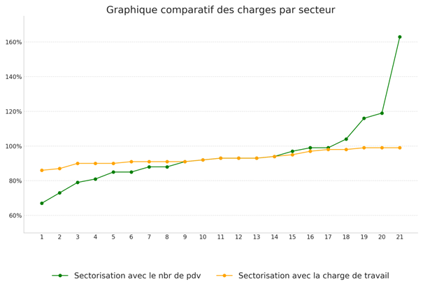 - Le second basé sur la charge de travail réelle (nombre de visites + temps de trajet).